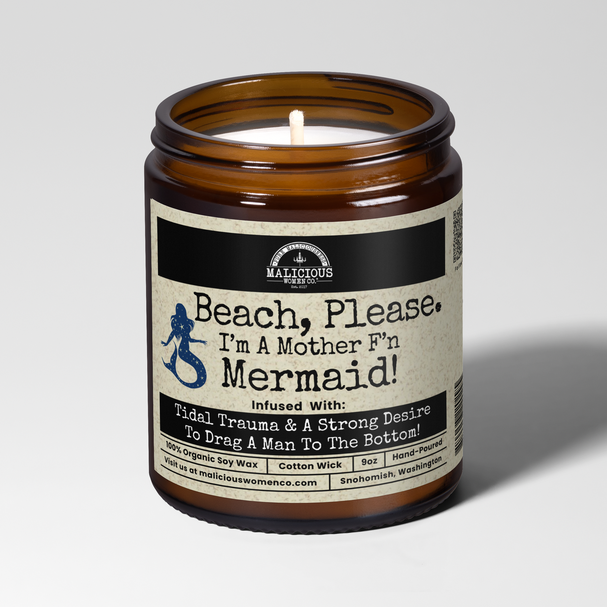 Beach Please! I'm A MotherF'n Mermaid 9oz Funny Candle Malicious Women Co